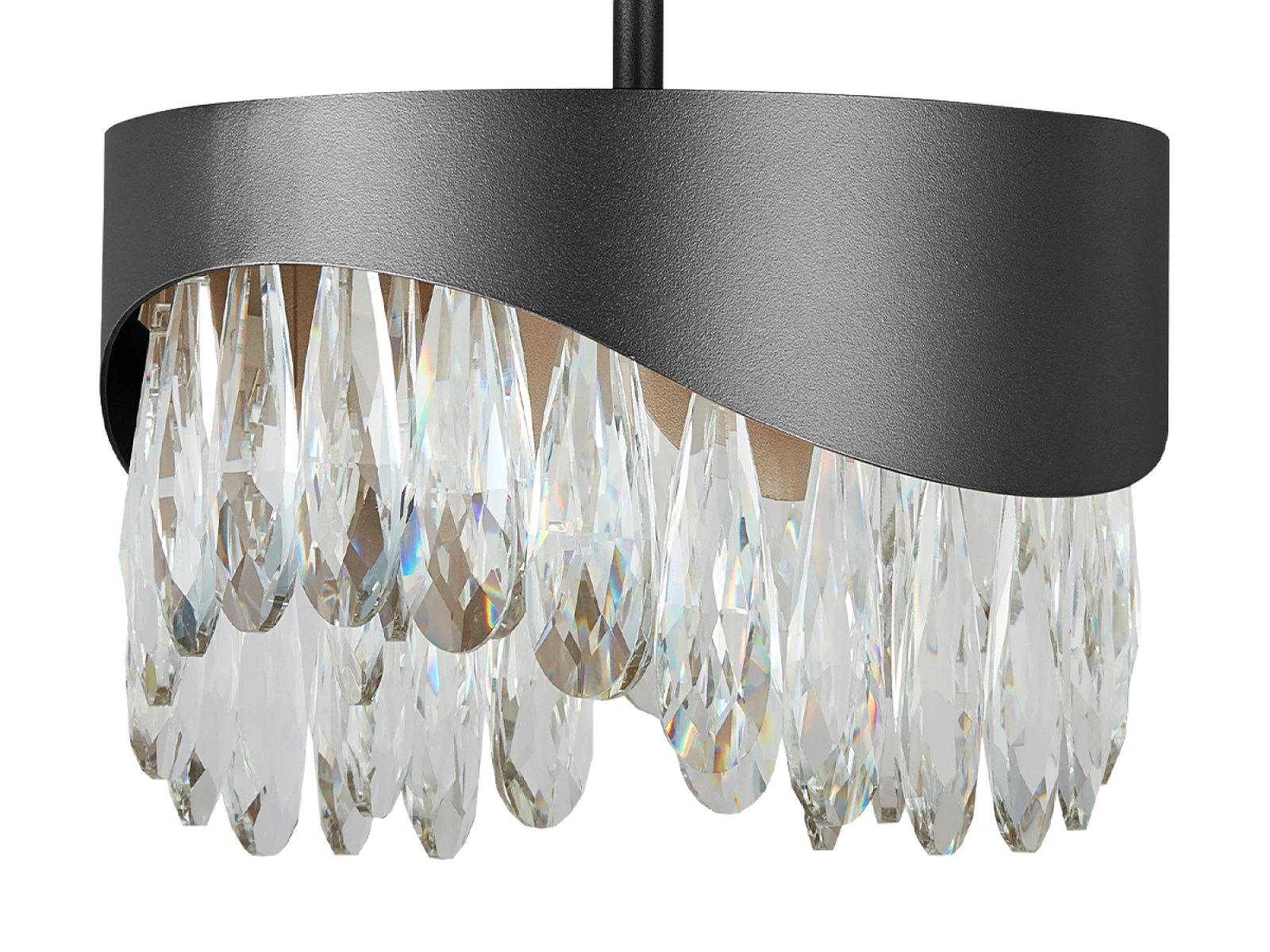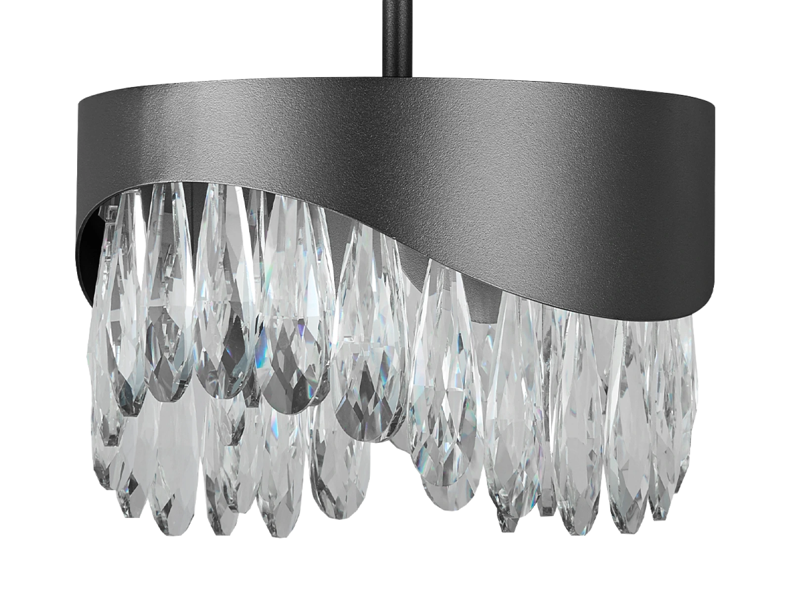 Construcția corpului de iluminat constă din metal din oțel inoxidabil de înaltă calitate, cu un finisaj premium, completat de cristale tăiate în detaliu care accentuează efectele de iluminare. Tehnologia de fabricație utilizată garantează stabilitatea materialului și estetica sa pe termen lung.
