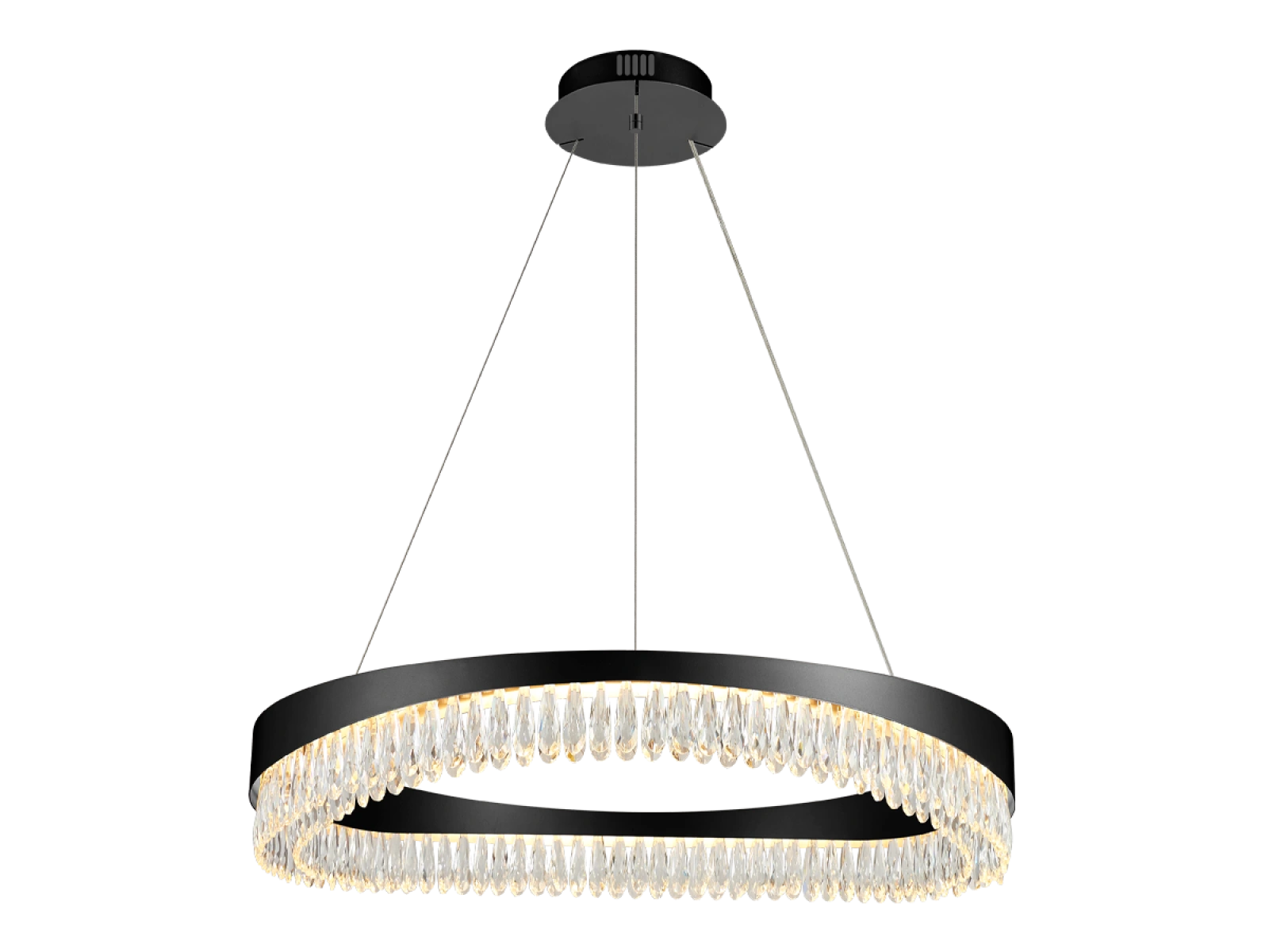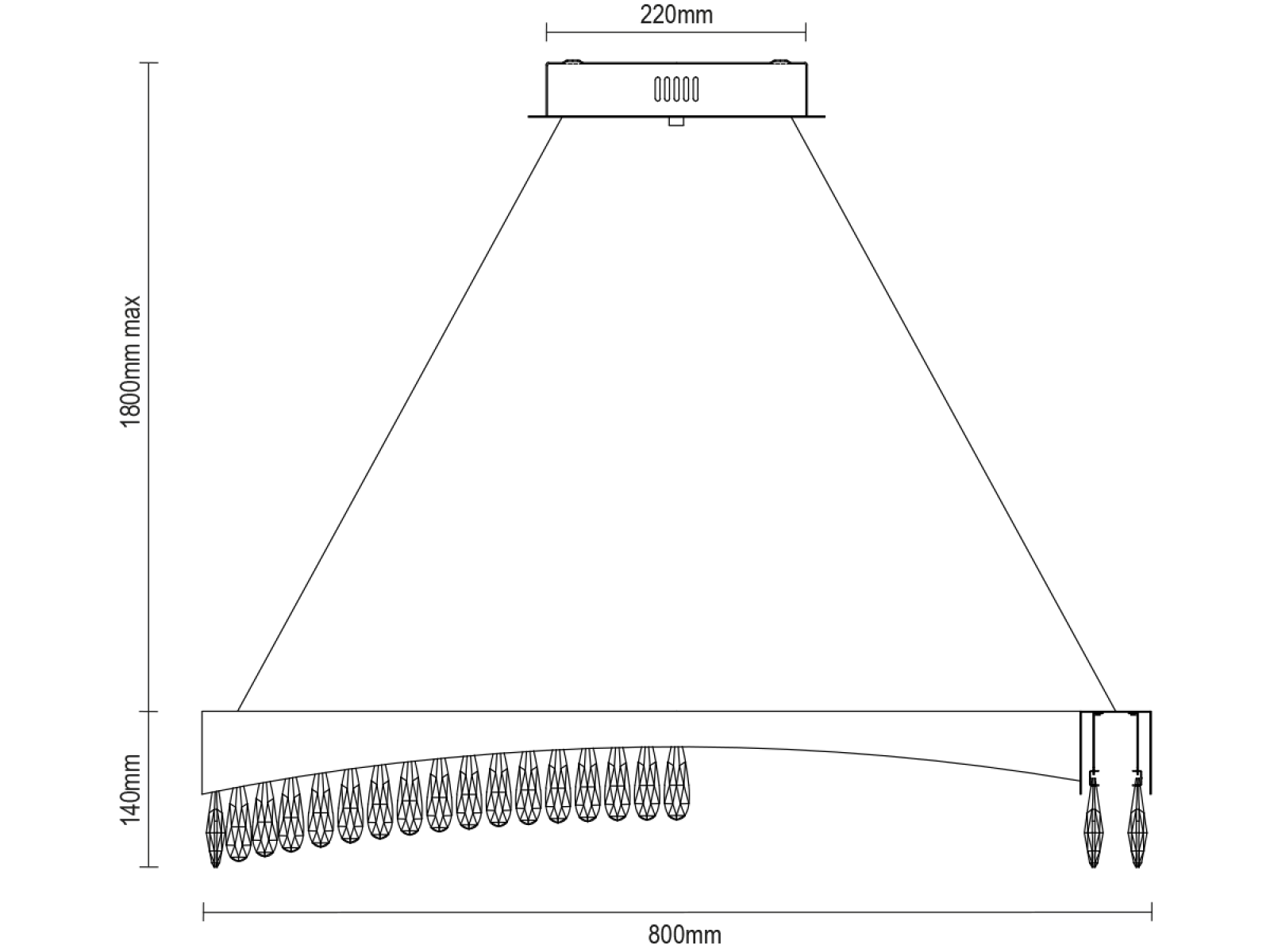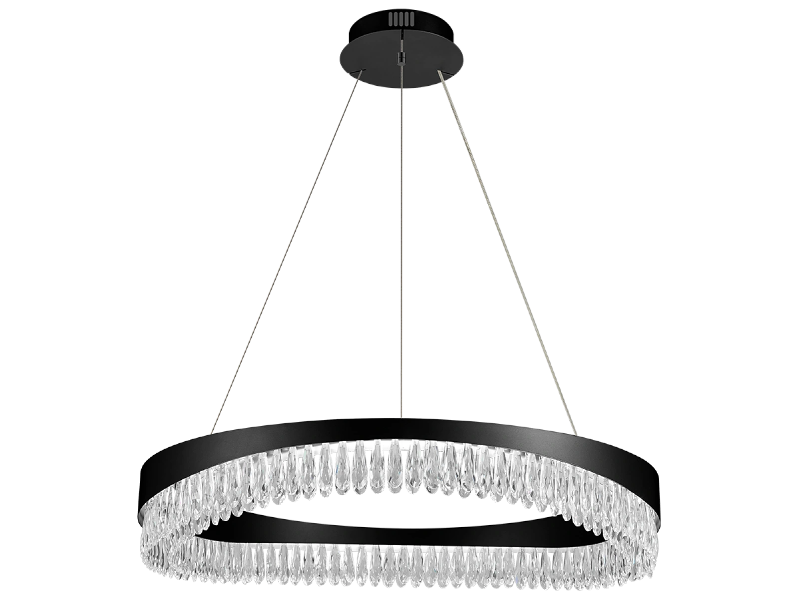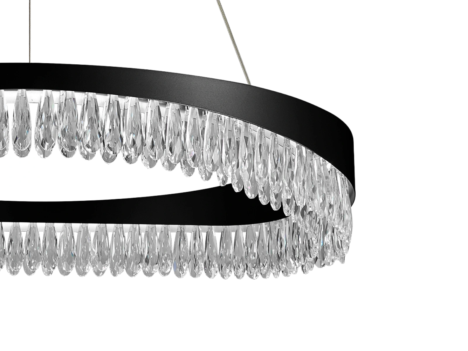 Finisajul metalic din oțel inoxidabil cu finisaj premium al corpului de iluminat este completat de cristale tăiate în detaliu care accentuează refracția și reflexia luminii. Manopera modernă garantează stabilitatea materialului și calitatea sa estetică chiar și după o utilizare prelungită.
