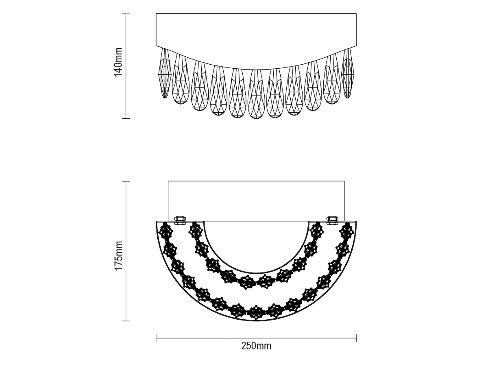 Construcția corpului de iluminat constă în metal din oțel inoxidabil de înaltă calitate cu un finisaj premium, completat de cristale tăiate în detaliu care accentuează efectele de iluminare. Tehnologia de fabricație utilizată garantează durabilitatea materialului și păstrarea aspectului său.