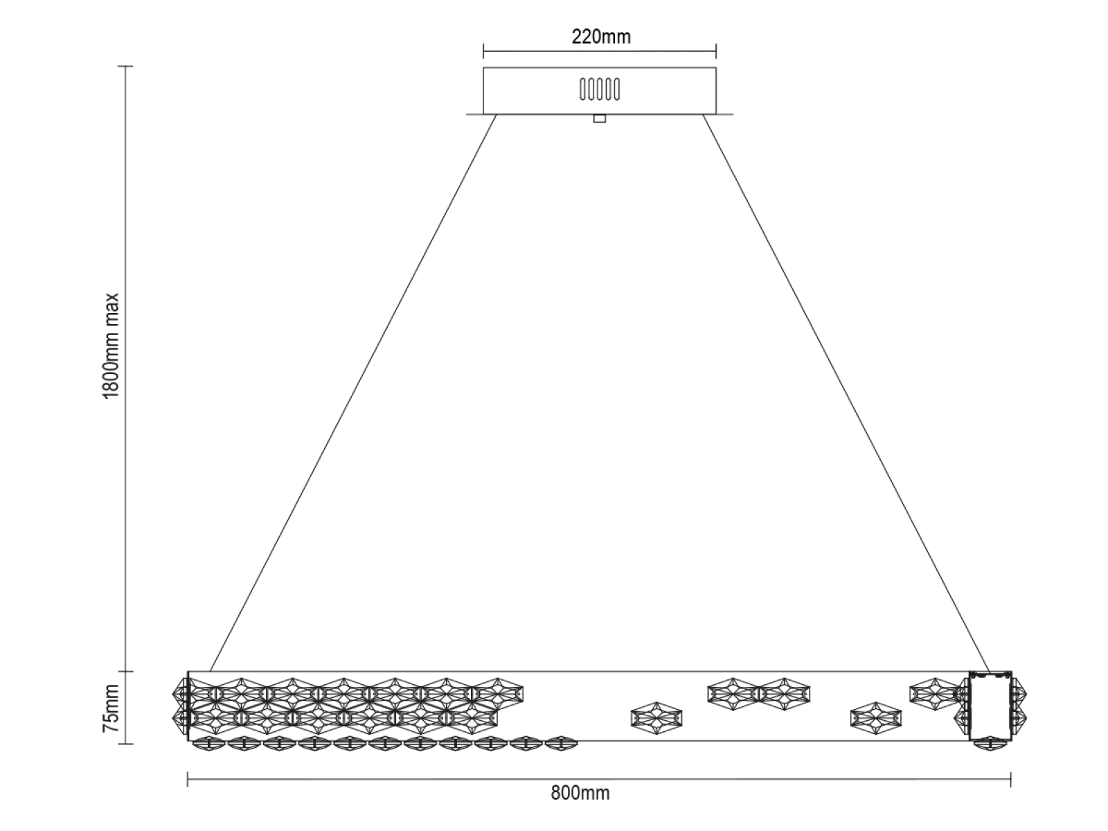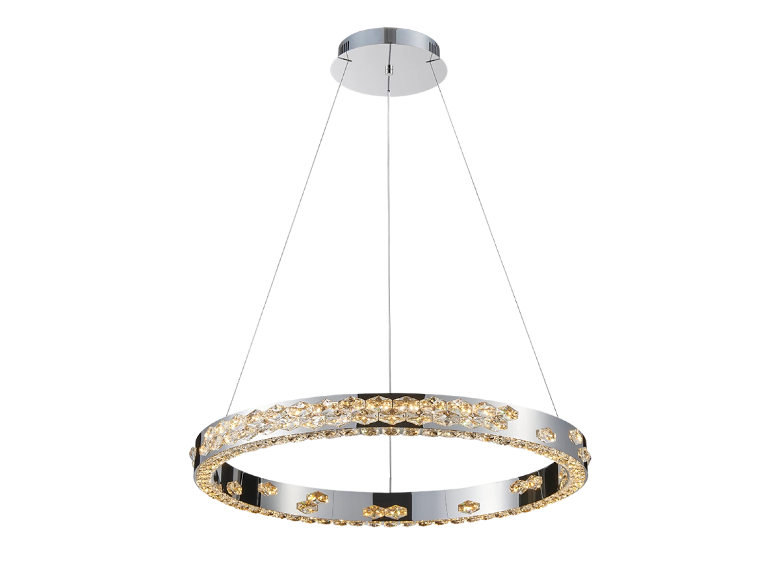 Corpul de iluminat combină metalul din oțel inoxidabil cu un finisaj cromat și cristalele tăiate cu precizie care lucrează eficient cu lumina, crescând atât reflexia, cât și refracția acesteia. Manopera de calitate asigură durabilitatea îndelungată și păstrarea aspectului estetic.