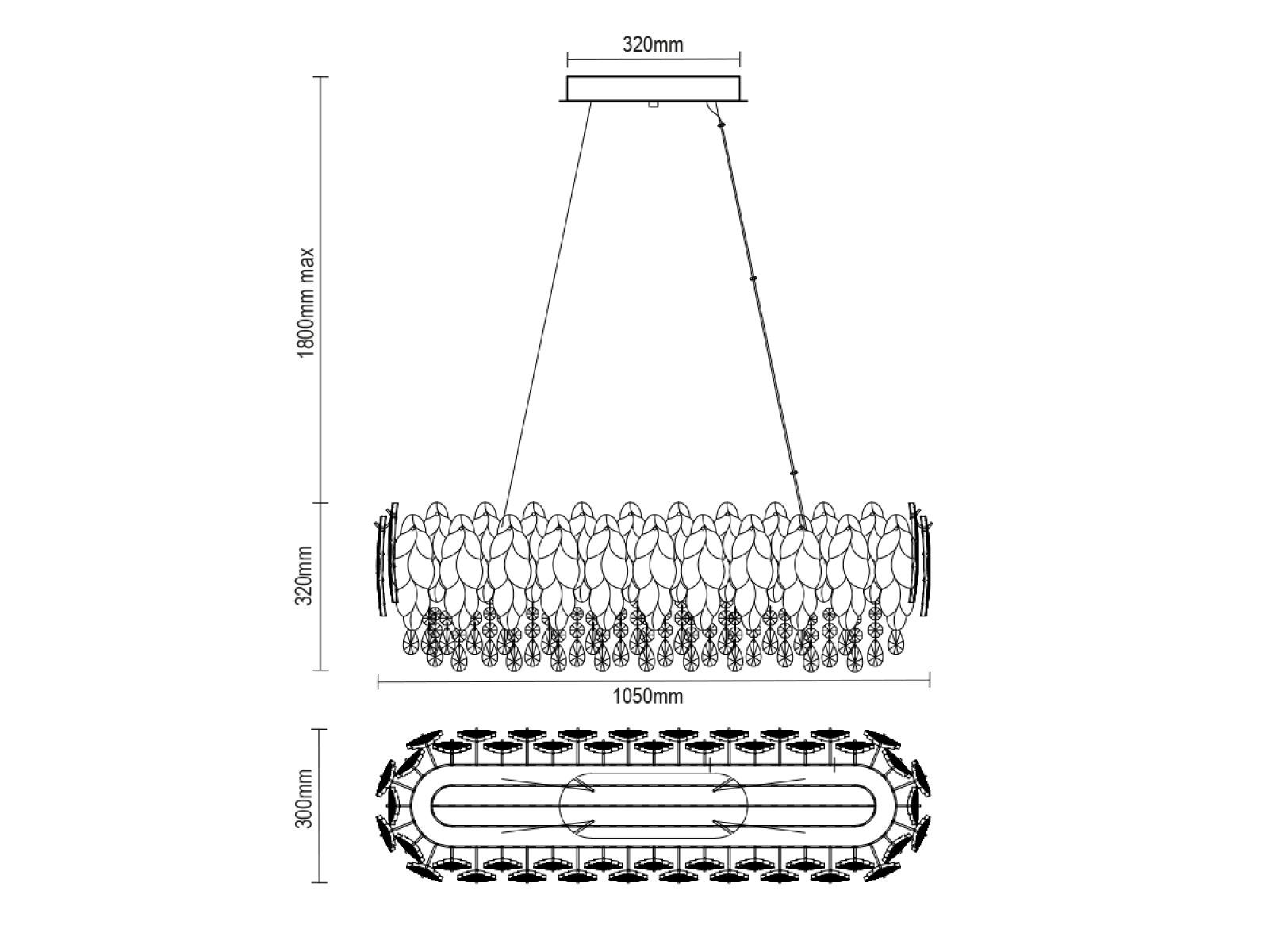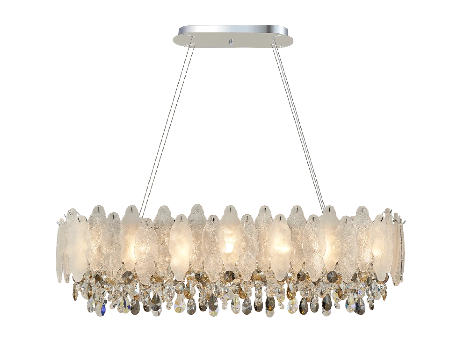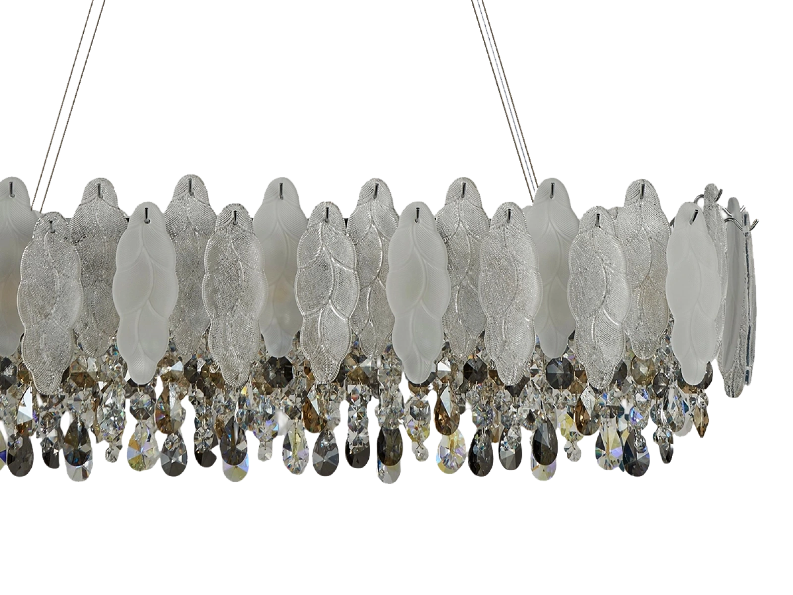 Structura metalică într-un finisaj de înaltă calitate este completată de elemente din sticlă și cristal tăiat care difuzează ușor lumina și creează un efect de iluminare subtil. Lampa are un aspect de bun gust și atemporal, cu atenție la detalii și manoperă de calitate.