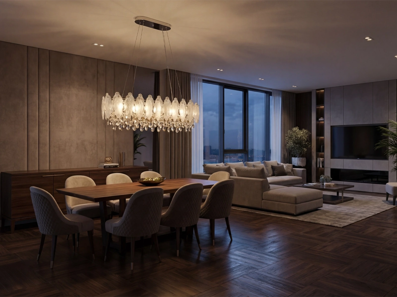 Lampa suspendată din seria GURU de la VIZARDI este un amestec armonios de eleganță, lux subtil și design modern. Datorită aspectului său distinctiv, dar echilibrat, se integrează natural în livinguri, sufragerii, dormitoare și spații reprezentative, unde creează o atmosferă primitoare și elegantă.