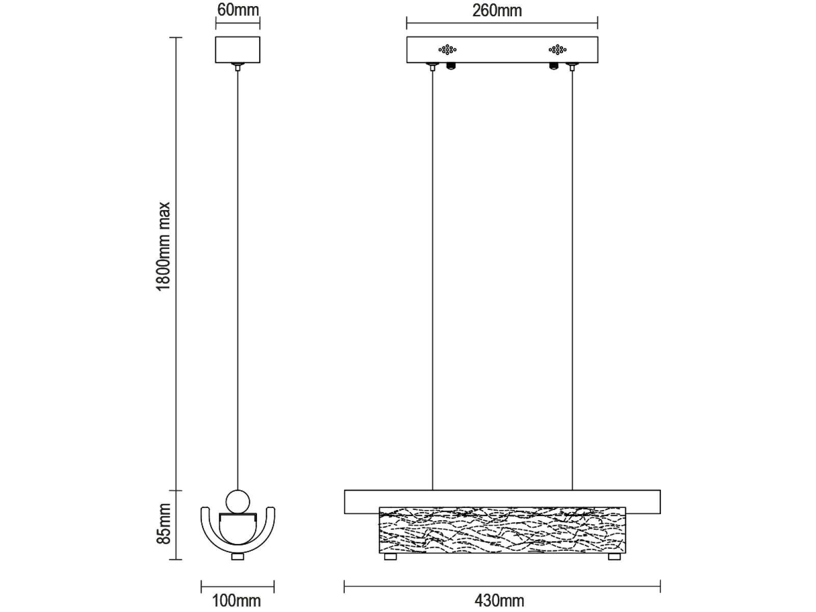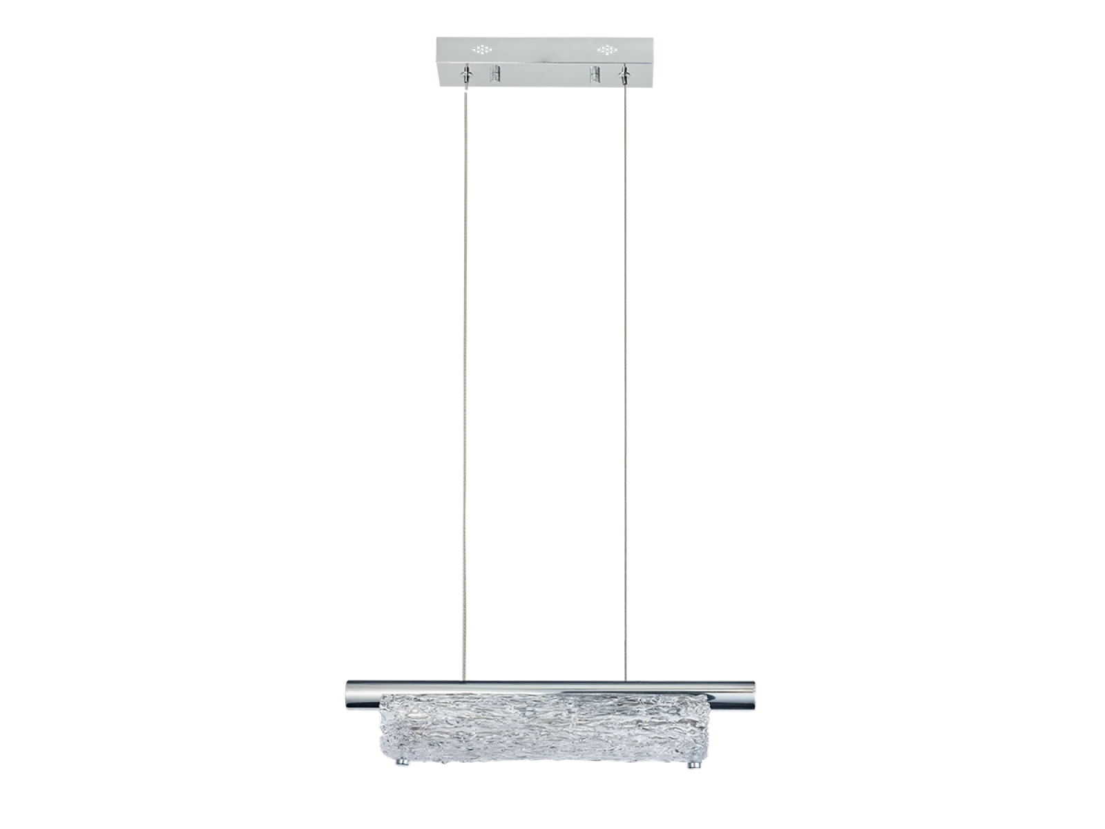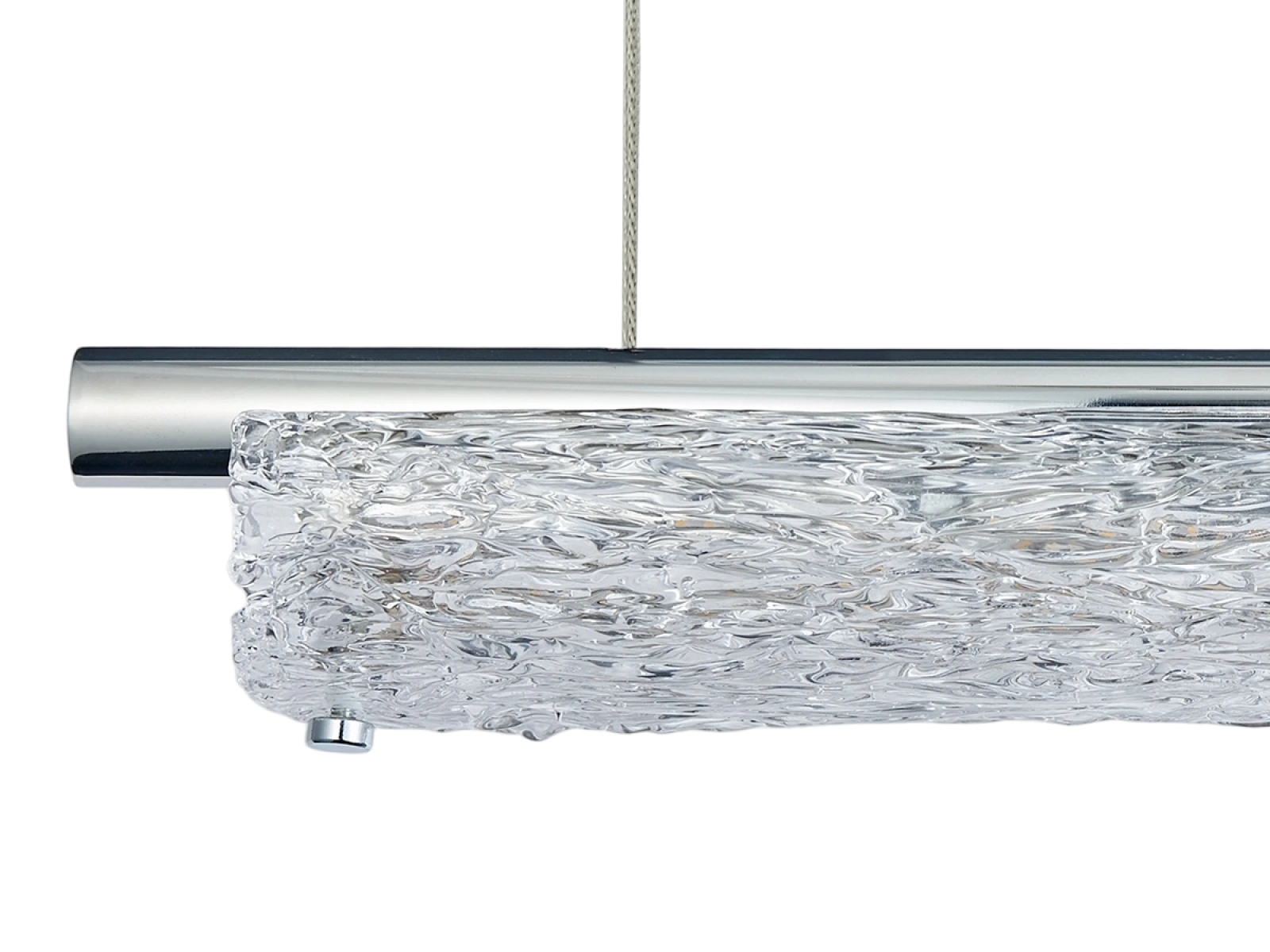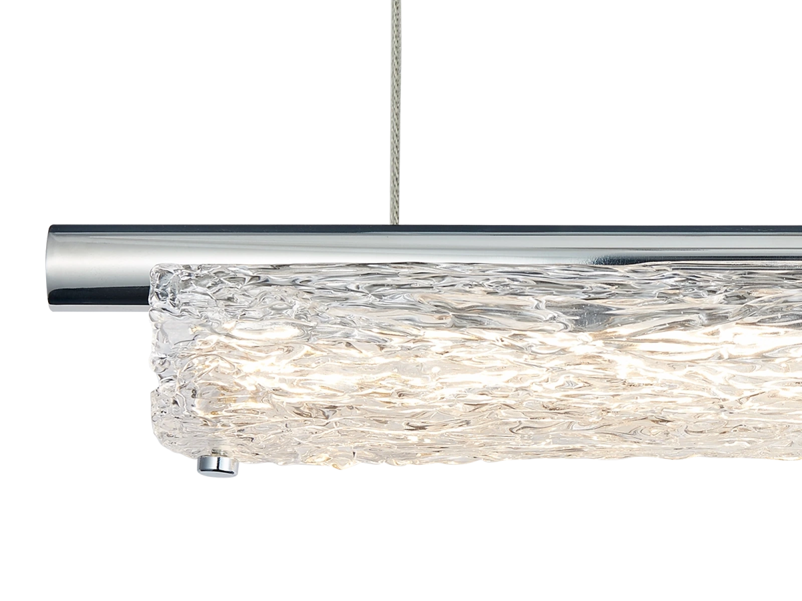 Corpul de iluminat este realizat din metal de oțel inoxidabil de înaltă calitate, cu finisaj cromat, care asigură durabilitate îndelungată, stabilitate și un aspect luxos. Elementele din sticlă cu o suprafață texturată de inspirație bark asigură o difuzie uniformă și plăcută a luminii.