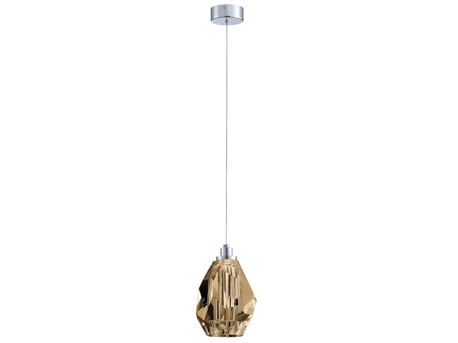 Structura corpului de iluminat este realizată din oțel de înaltă calitate cu finisaj cromat și este completată de elemente de cristal tăiate cu precizie, cu structură de diamant. Acest lucru creează un efect de iluminare unic și o strălucire luxoasă în spațiu.