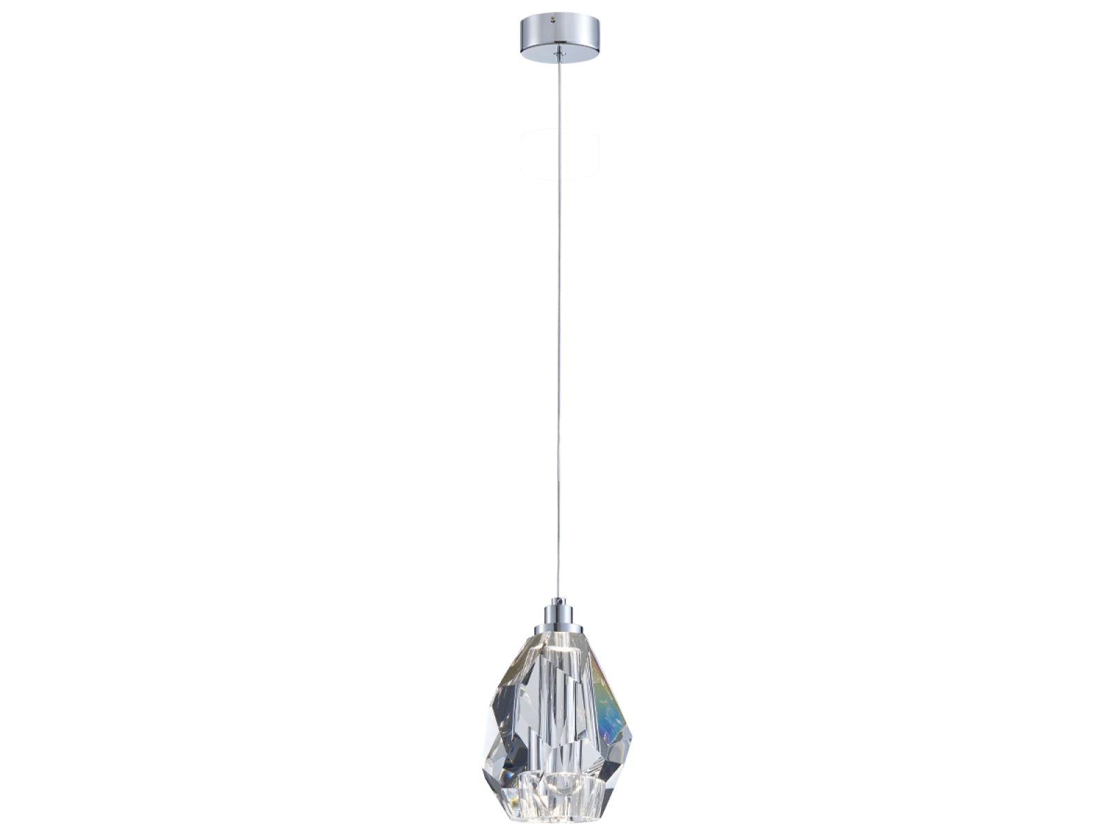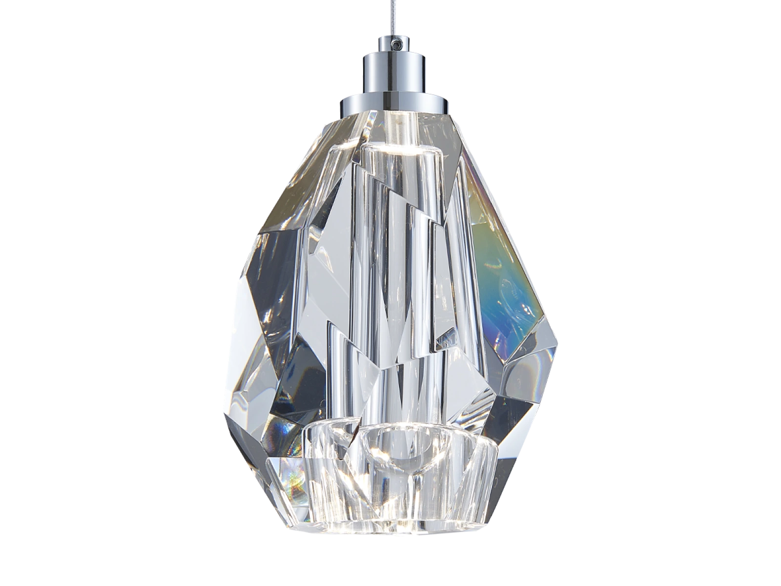 Structura corpului de iluminat este realizată din oțel de înaltă calitate cu finisaj cromat și este completată de elemente de cristal tăiate cu precizie, cu structură de diamant. Acest lucru creează un efect de iluminare unic și o strălucire luxoasă în spațiu.