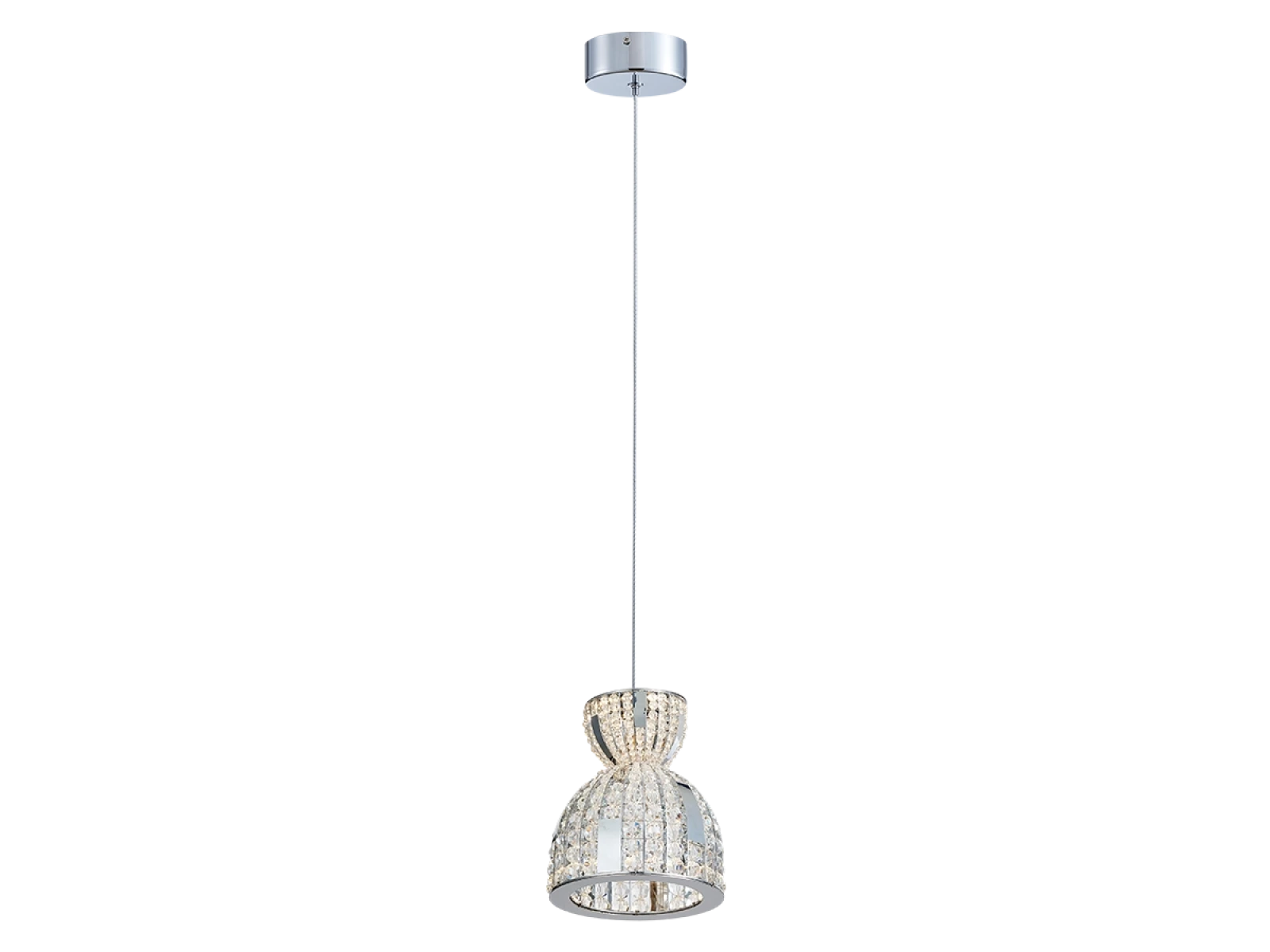 Lampa LED suspendată VIZARDI din seria KATRIA impresionează prin forma sa elegantă și designul luxos cu detalii bogate din cristal care creează efecte de iluminare impresionante. Abajurul de formă delicată în combinație cu finisajul cromat lucios conferă corpului de iluminat un aspect atemporal și prezentabil.