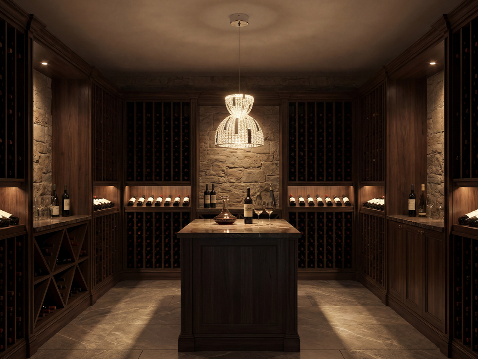 Construcția este realizată din oțel inoxidabil și completată cu cristale tăiate care asigură refracția și reflexia intensă a luminii. Datorită manoperei de înaltă calitate, corpul de iluminat își păstrează aspectul estetic și stabilitatea chiar și în cazul utilizării pe termen lung.