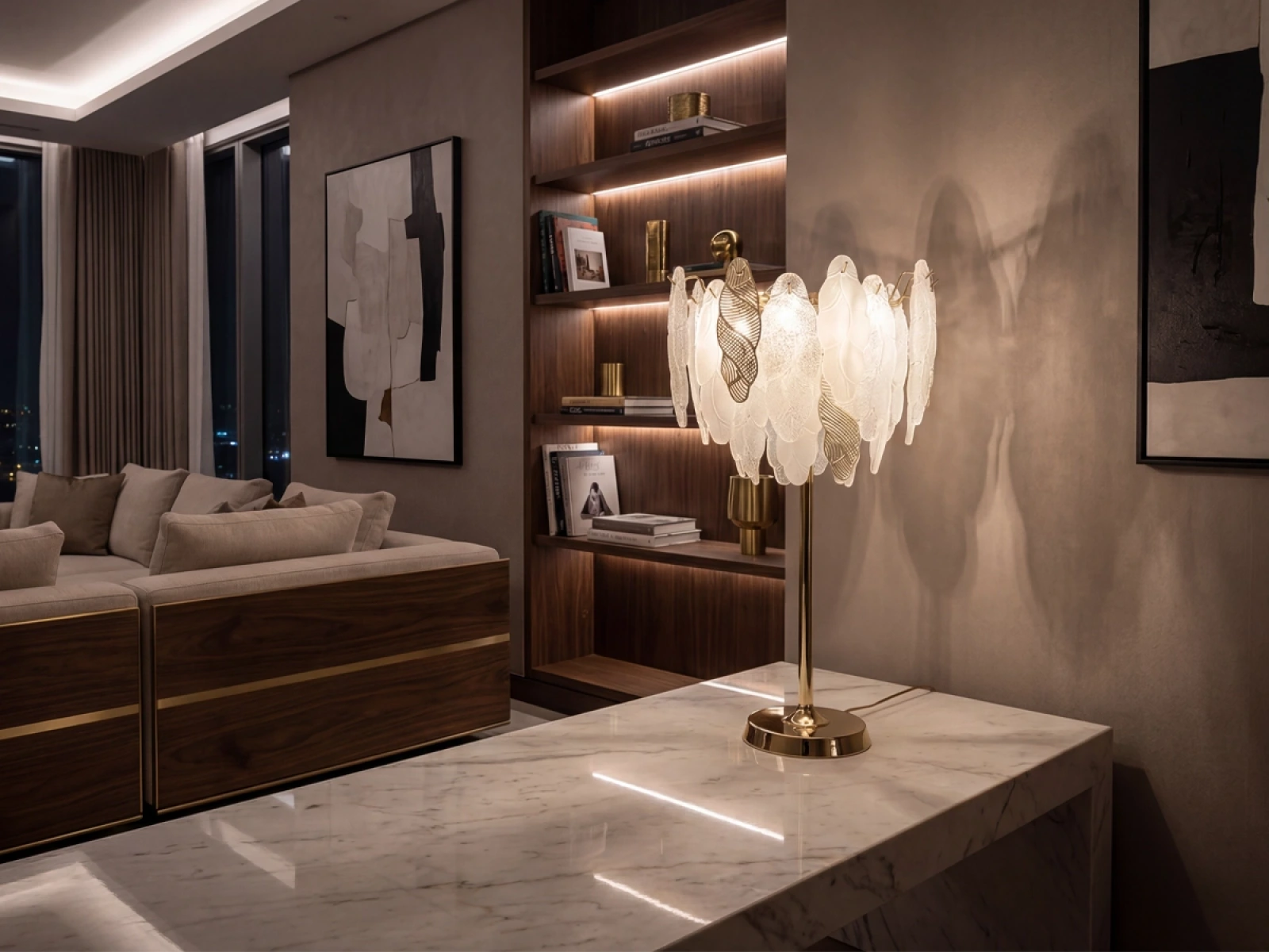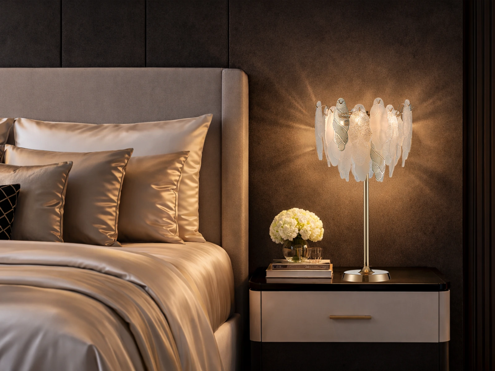 Structura fină a elementelor din sticlă combinată cu detaliile decorative din metalsubliniază caracterul luxos și sofisticat al acestei colecții.