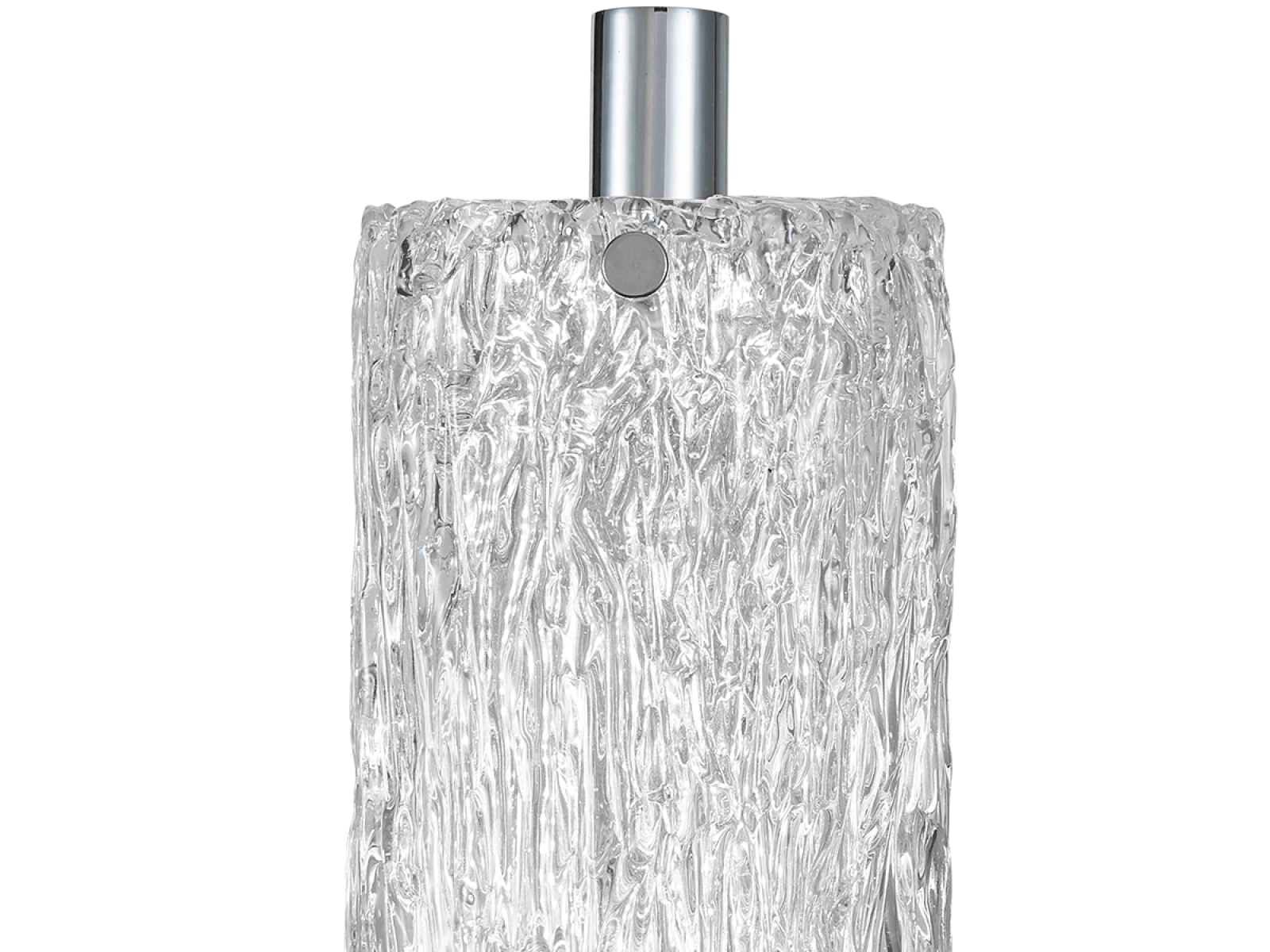 Corpul de iluminat este fabricat dinoțel inoxidabil de înaltă calitate cu finisaj cromat, care asigură durabilitate îndelungată, stabilitate și un aspect luxos. Elementele din sticlă cu o suprafață texturată inspirată de bară asigură o difuzie uniformă și plăcută a luminii.