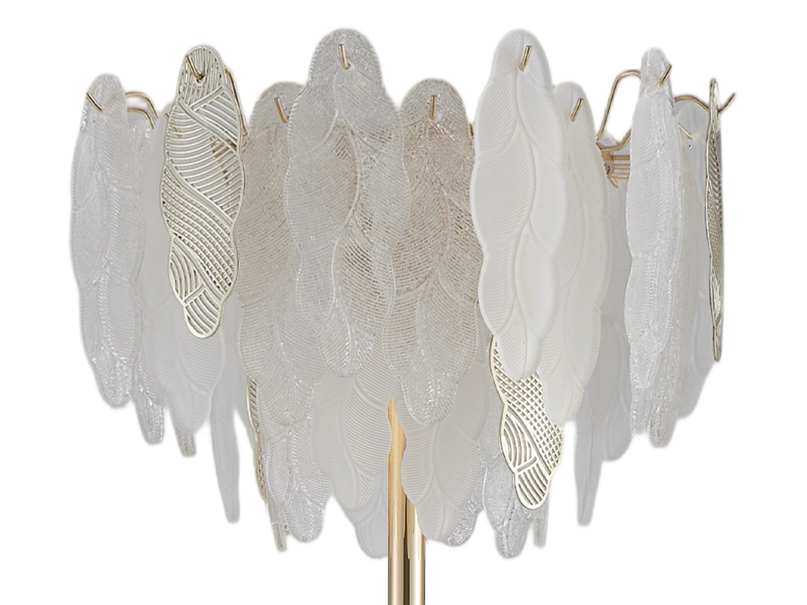 Structura fină a elementelor din sticlă combinată cu detaliile decorative din metal subliniază caracterul luxos și sofisticat al acestei colecții.