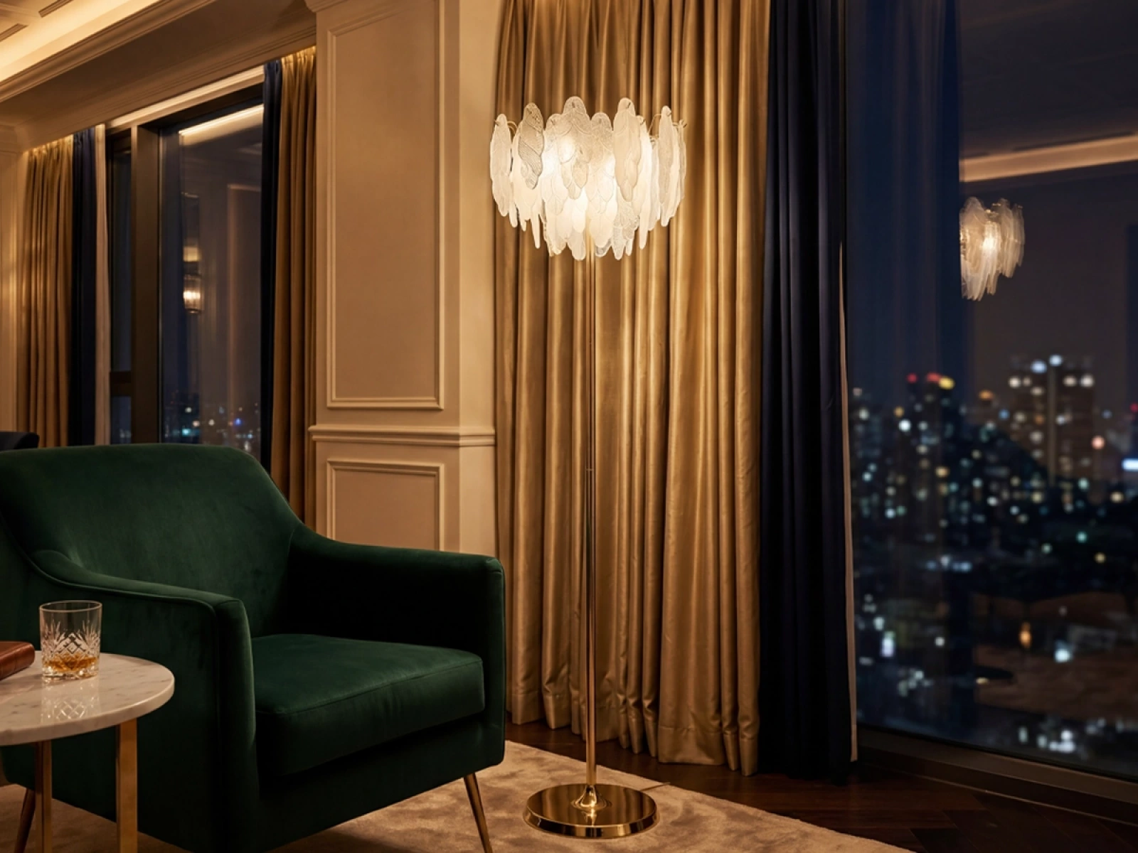 Lampa de podea CHOREO de la VIZARDI este o lampă de design elegant, cu un caracter decorativ distinctiv. Aranjamentul precis al elementelor individuale creează o compoziție armonioasă cu un efect de iluminare unic și adaugă un accent vizual distinctiv spațiului. Corpul de iluminat este potrivit pentru camera de zi, sufragerie, dormitor și interioarele reprezentative.