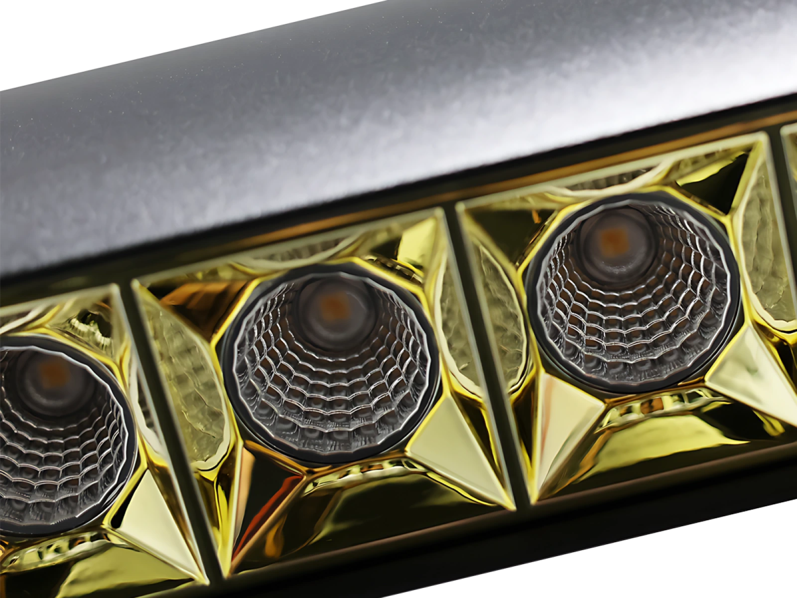 Corpul de iluminat este fabricat din aluminiu aerospațial, prelucrat CNC și tratat la suprafață prin pulverizare cu NANO-magnetron. Această tehnologie de producție garantează stabilitatea pe termen lung a materialului și a proprietăților sale de suprafață.