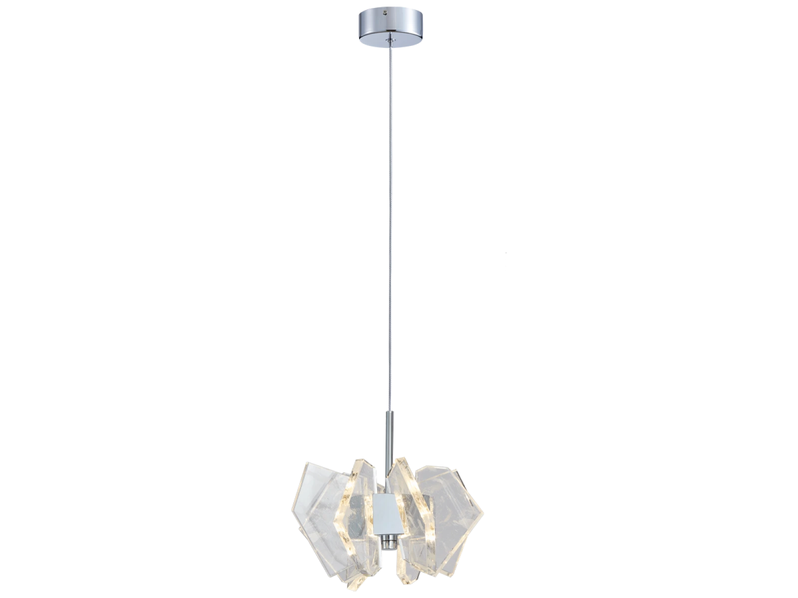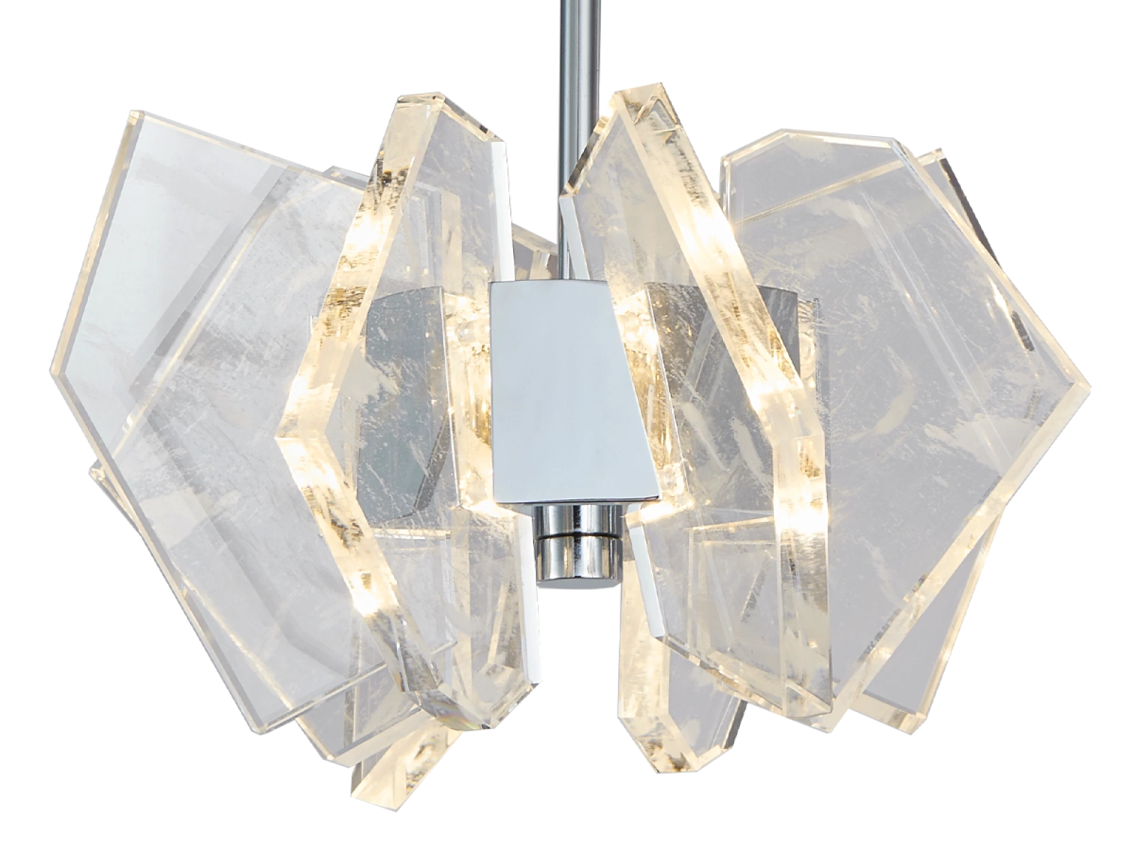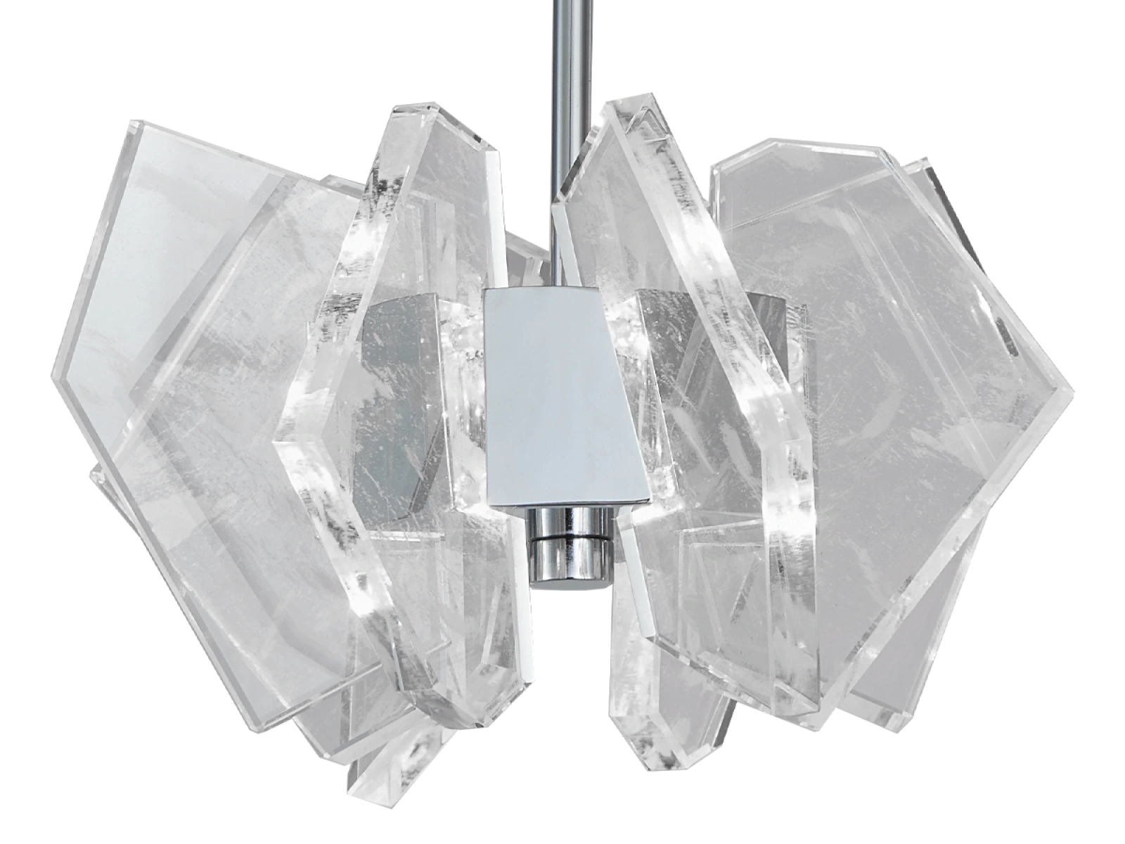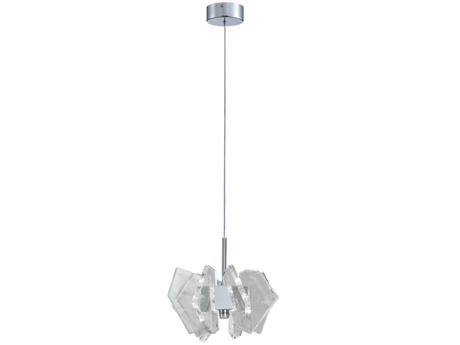 Construcția este realizată din oțel de înaltă calitate cu finisaj cromat și completată de elemente de cristal originale, tăiate cu precizie, care asigură refracția și reflectarea intensă a luminii. Rezultatul este o ambianță luminoasă luxoasă, cu un efect decorativ distinctiv, care va sublinia caracterul interioarelor moderne și reprezentative.